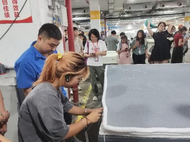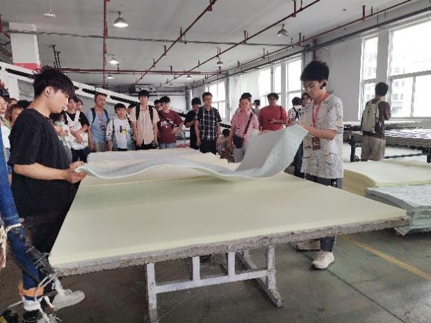 顾家家居江东基地的实操环节,将课堂直接搬进了生产一线,让同学们经历了一场匠艺洗礼。通过3D床垫的手工缝线组装和海绵拼装等关键环节实操体验,同学们真正感受到了产品制造过程中对精度和质量的严格要求。实操环节让学生深刻认识到理论知识与实际操作的差距,通过实际操作真正理解了工艺要求的严格性。参与实操的同学感慨道:“每个工艺环节都需要精确控制,都是品质的守护者,这对我们今后的专业学习,是最生动的指导。”