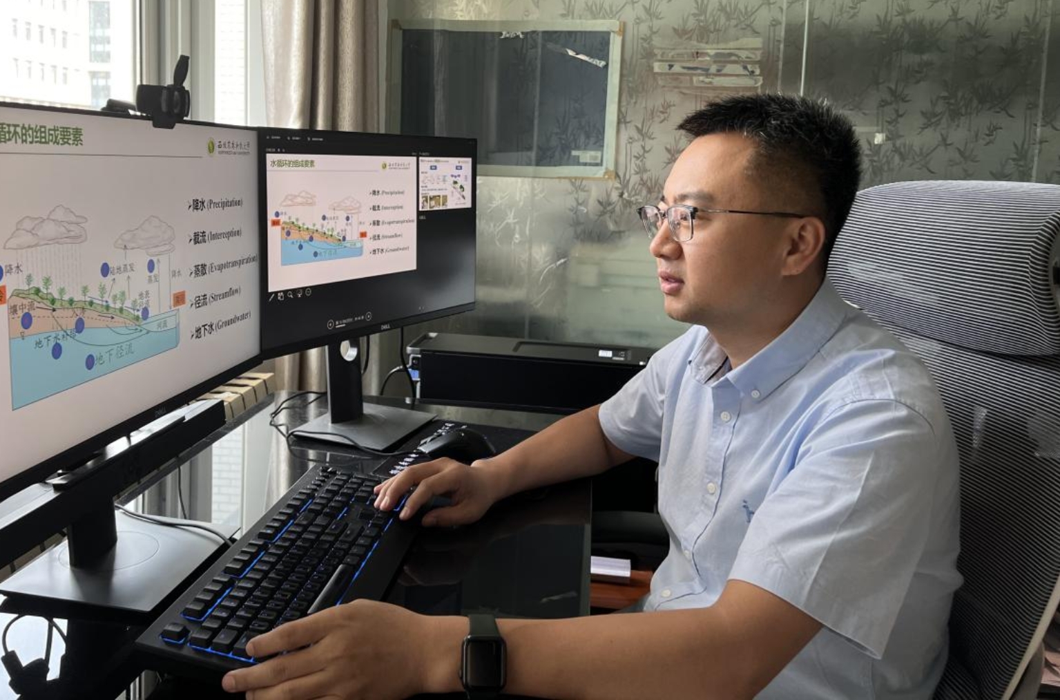 学院青年教授李强做了题为“气候和森林植被变化对全球水资源的影响”的报告。报告从极具感染力的“世界森林日”、“世界水日”的宣传视频出发,引出地球水资源问题,介绍了“生态水文学”这一新兴学科,图文并茂地介绍降水、截流、蒸散发、径流和地下水等的水循环的过程,引出森林水涵养功能建立的新课题,引发了营员们对水资源与森林环境互作关系的深刻的思考和极大兴趣。
